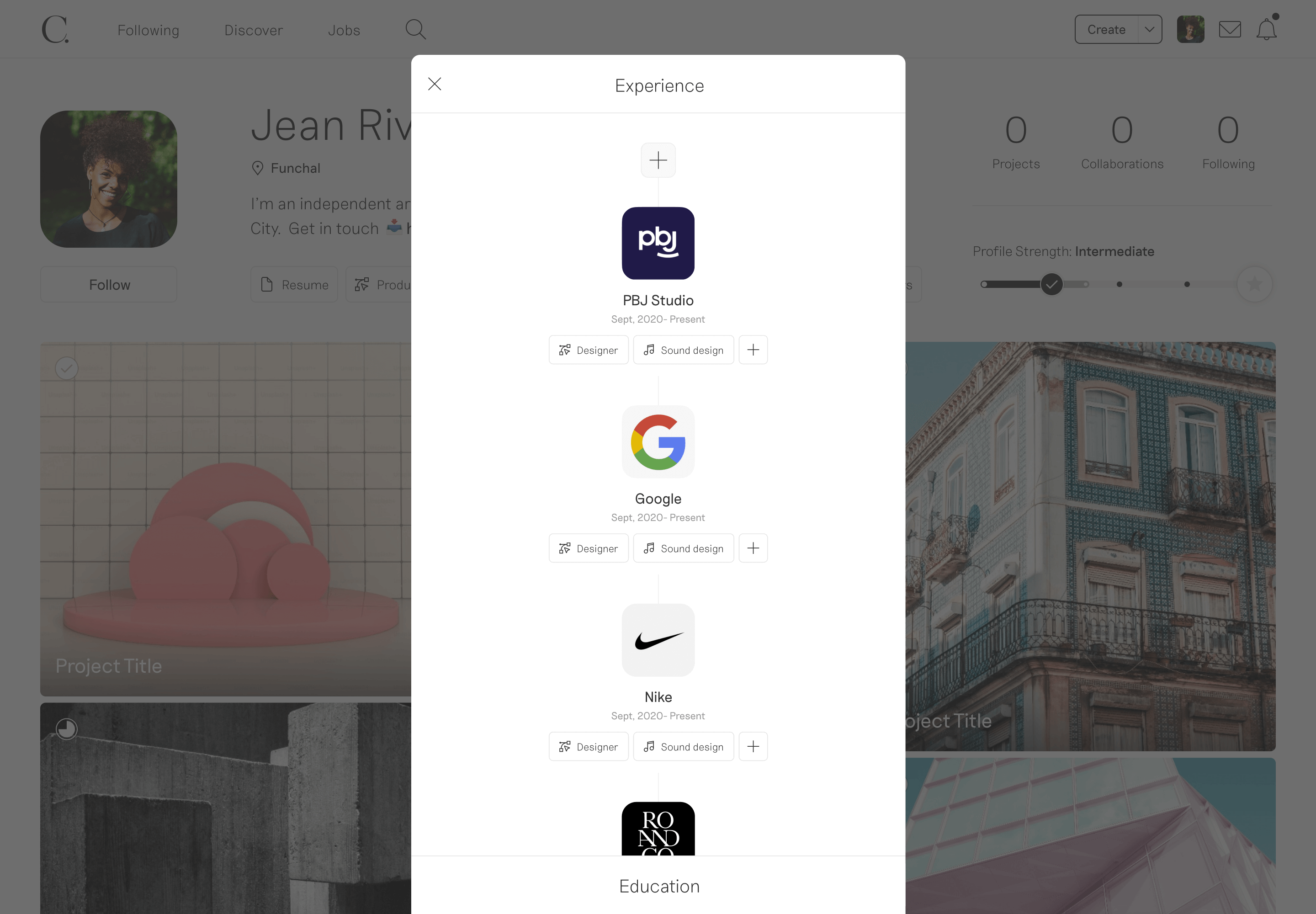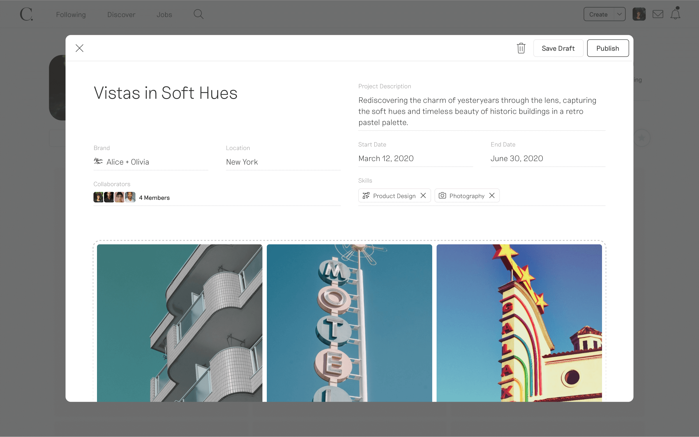 I worked on refining the project creation and viewing experience. Our goal was to simplify the process and enhance visual presentation, enabling users to effectively display their work and attract meaningful opportunities.