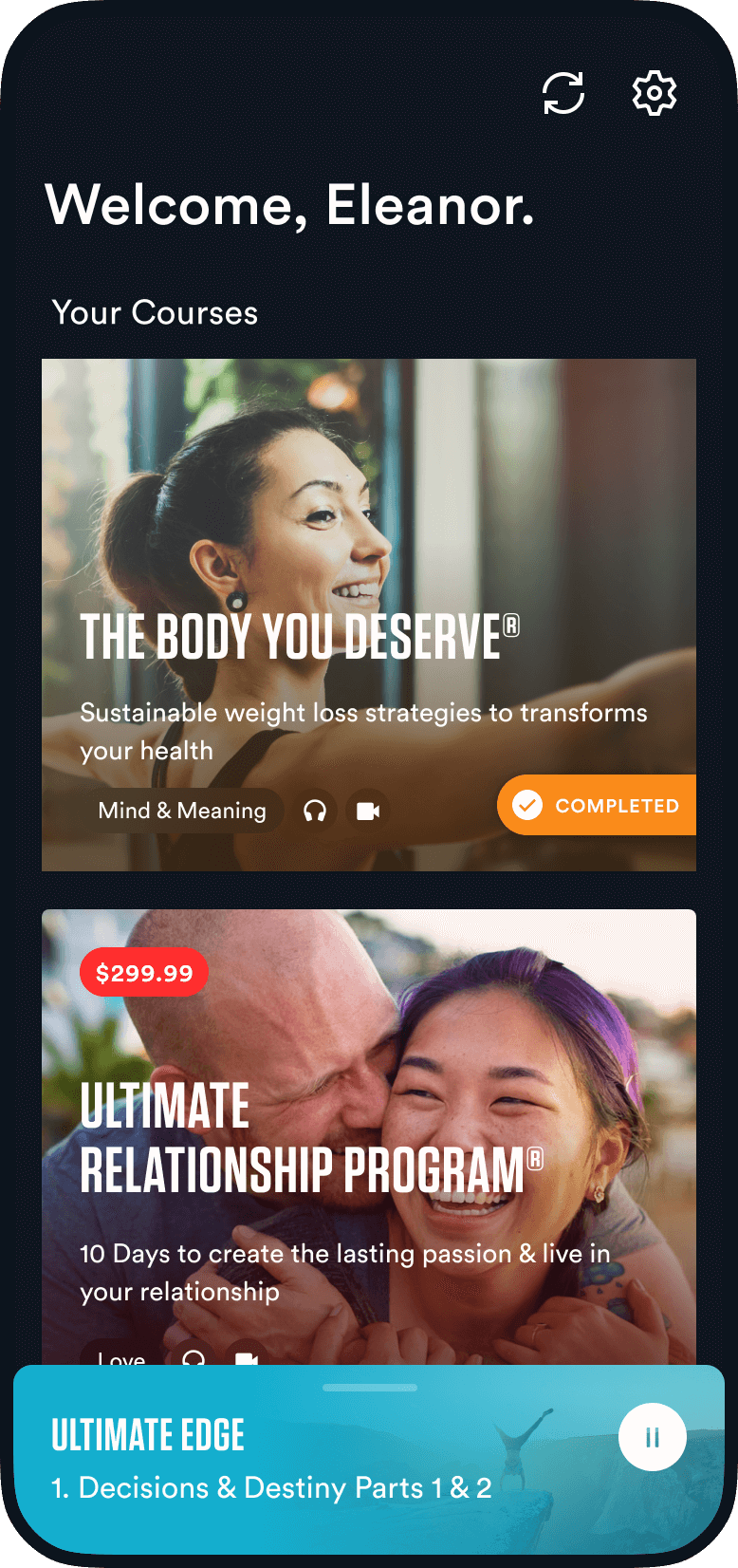 The Breakthrough app's core courses, existing prior to development, posed a challenge: integrating them seamlessly while preserving Tony Robbins' brand for user recognition.