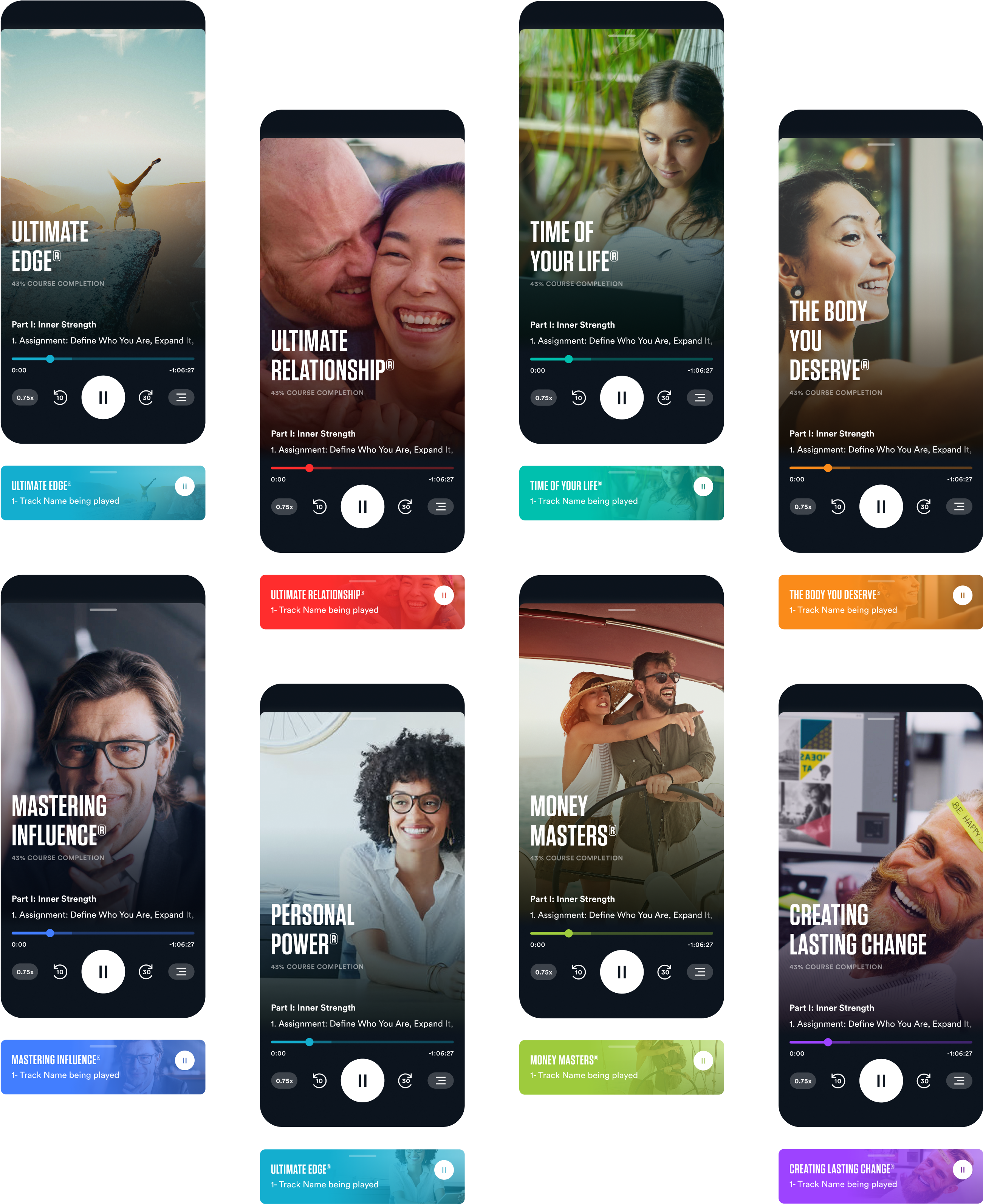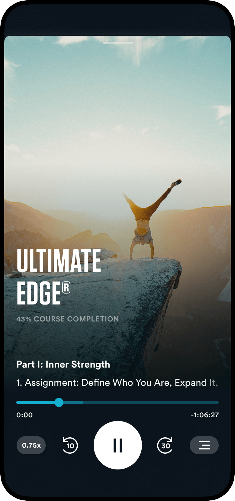 Course covers are key. We added a subtle player that matches each course's accent color for clarity. When minimized, this color contrasts with text and UI elements, while the course cover stays visible.